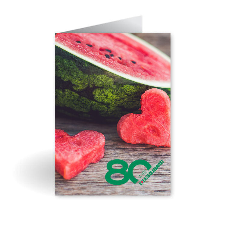 Gefalzte Klappkarte mit Briefumschlag bzw. Postkarte, mit dem Motiv: Melone