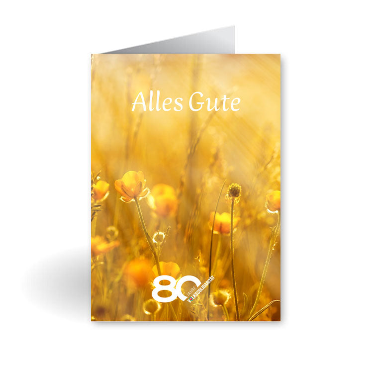 Gefalzte Klappkarte mit Briefumschlag bzw. Postkarte, mit dem Motiv: Alles Gute