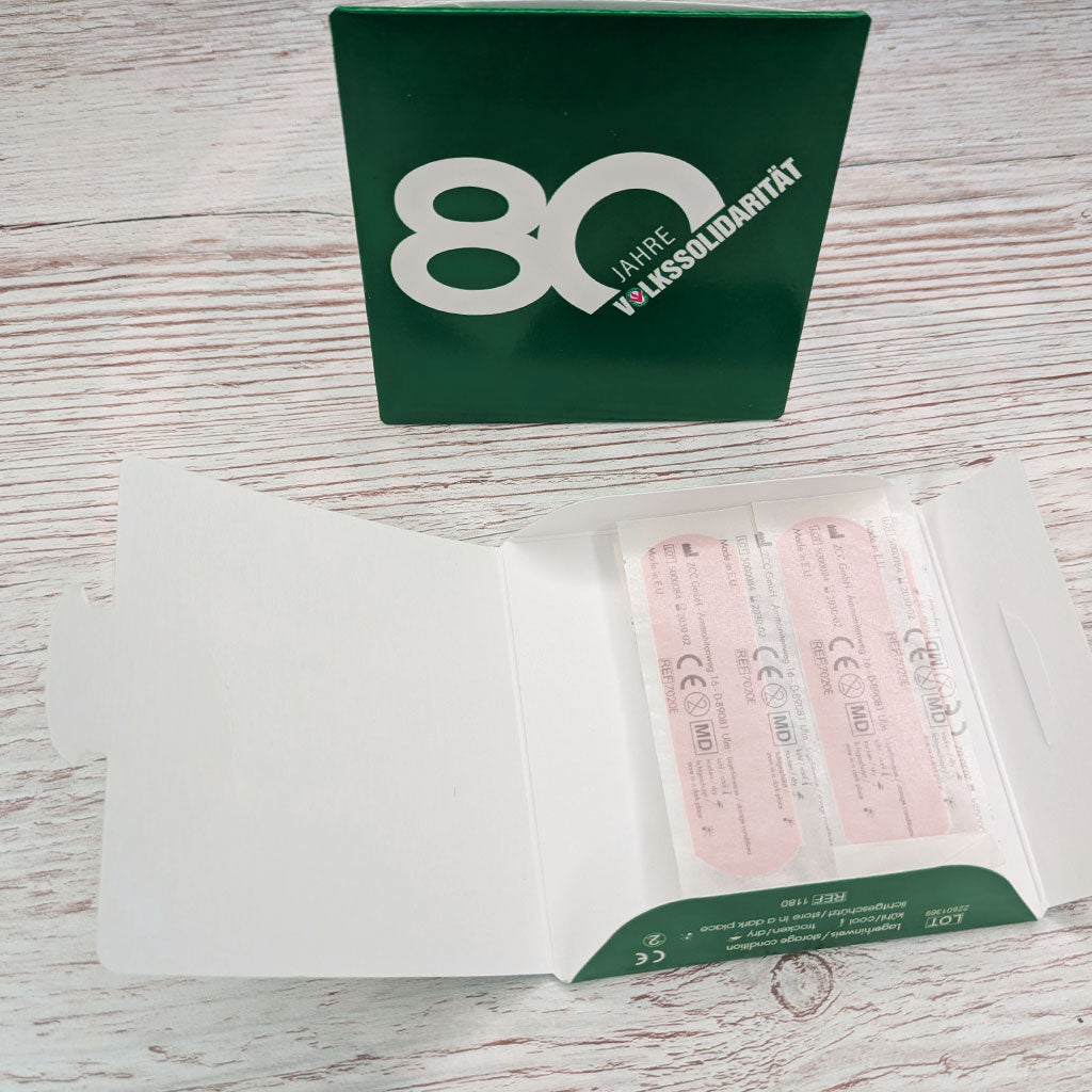 80 Jahre Volkssolidarität Pflastermäppchen - befüllt mit 10x unbedruckten / hautfarbenen, einzeln eingesiegelten Pflaster-Strips (ca. 70x20mm)
