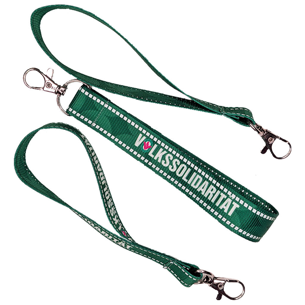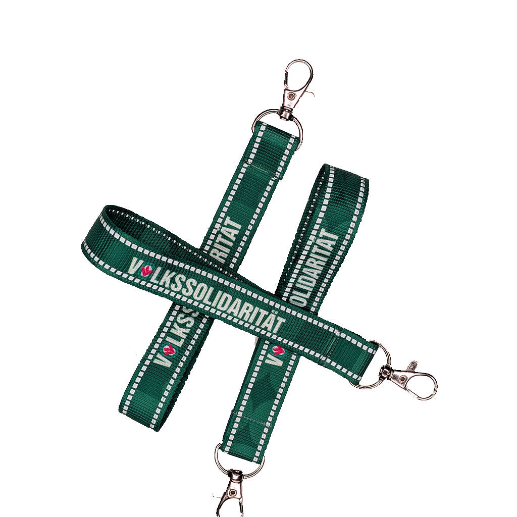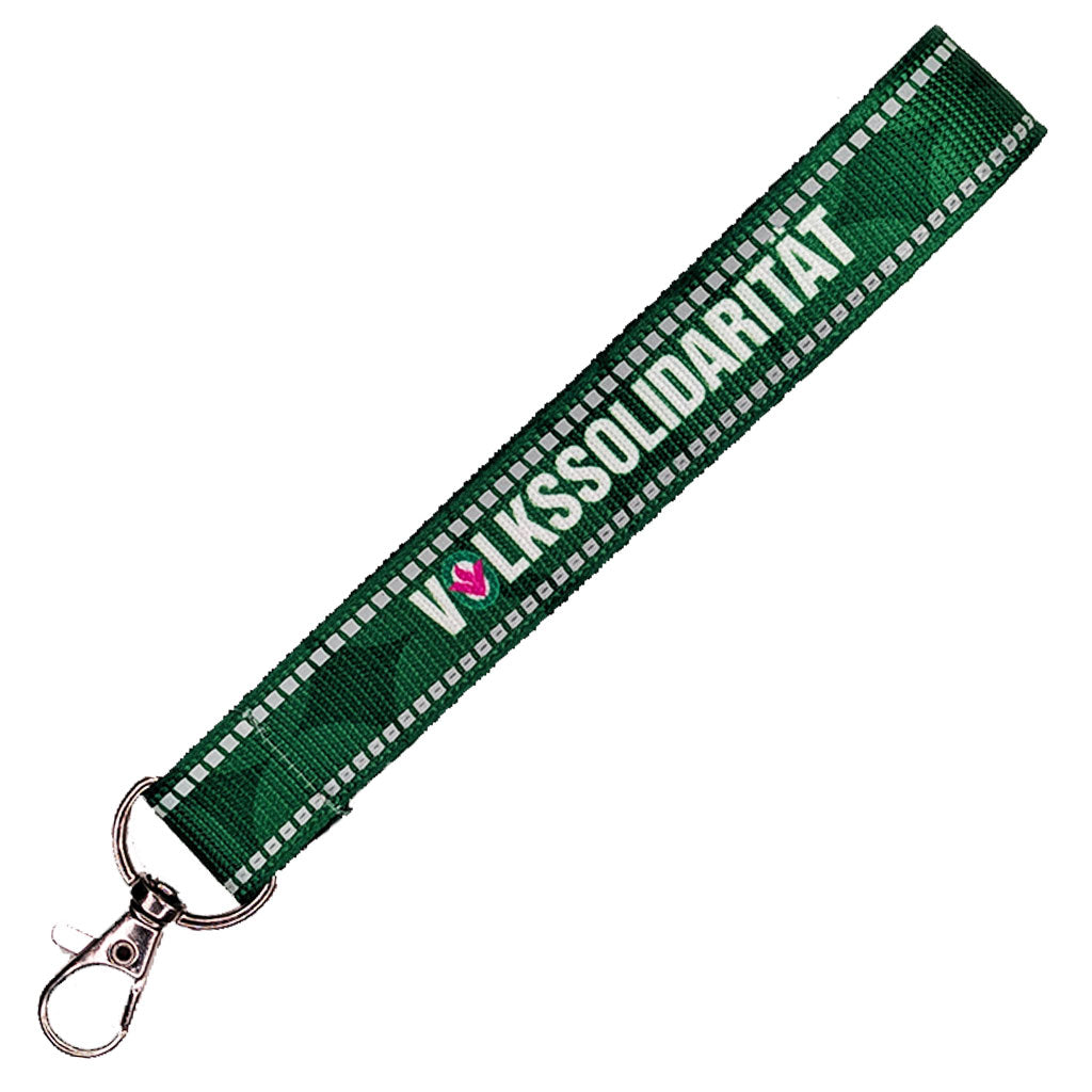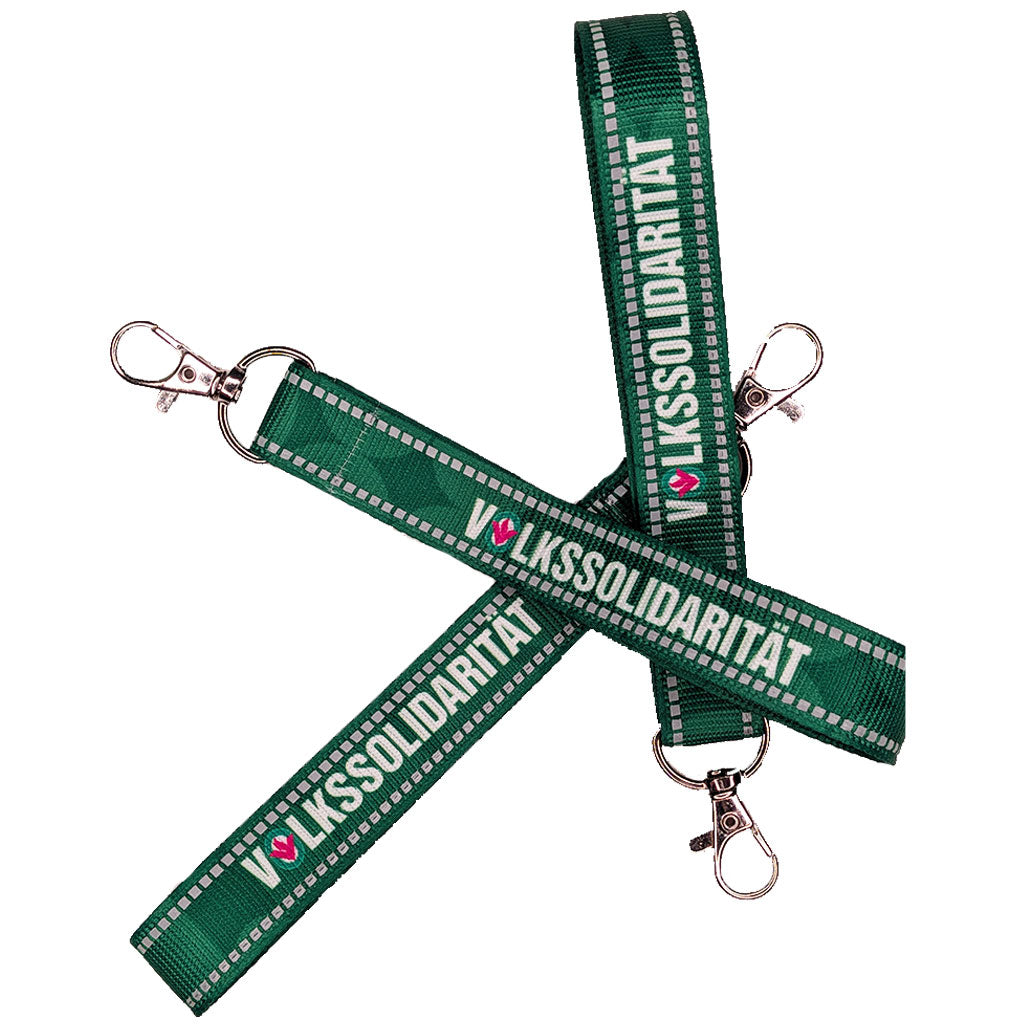 Der beidseitige Volkssolidarität-Druck ziert das 20 mm breite, etwa 18 cm lange Accessoire. Besonders praktisch: Die reflektierende Streifen macht dich und deine Sachen auch in der Dunkelheit sichtbar.